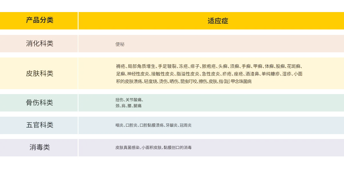 应对日常生活中的各种小病小痛,如便秘、口腔溃疡、咽炎、湿疹、皮炎、蚊虫叮咬、关节疼痛等。